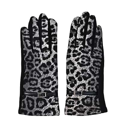 Set of 2 Leopard Printed Gloves & Hat - Grey