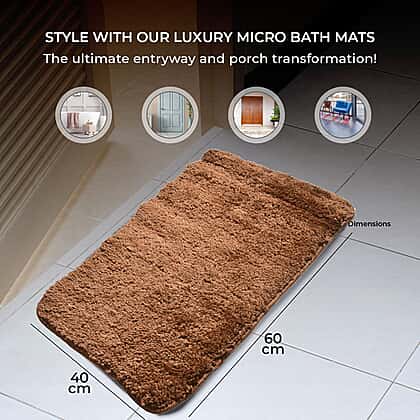 Set of 2 Luxury Microbath Mat with TPR Back - 1400 GSM (Size 40x60 cm) - Brown