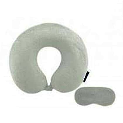 Set of 2 Memory Foam Neck Cushion with Eye Mask - White