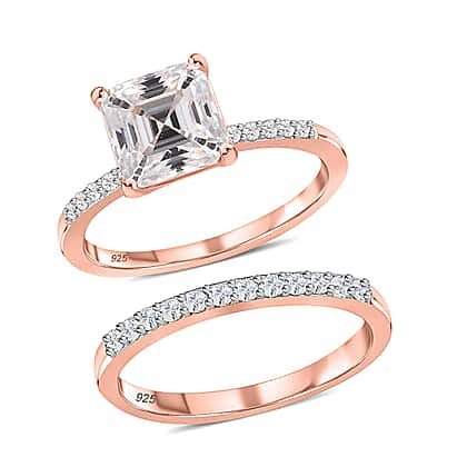 Set of 2 Moissanite Ring in 18K Vermeil Rose Gold Plated Sterling Silver 1.93 Ct.