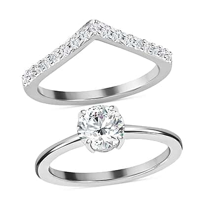 Set of 2 Moissanite Ring in Platinum Overlay Sterling Silver 1.08 Ct.