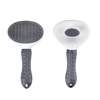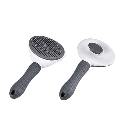 Set of 2 Pet Self-Cleaning Comb Grooming Brush for Dog and Cat - Grey
