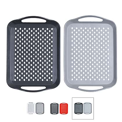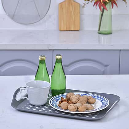 Set of 2 Rectangular Anti-Skid Rubber Grip Serving Tray - Black and Grey