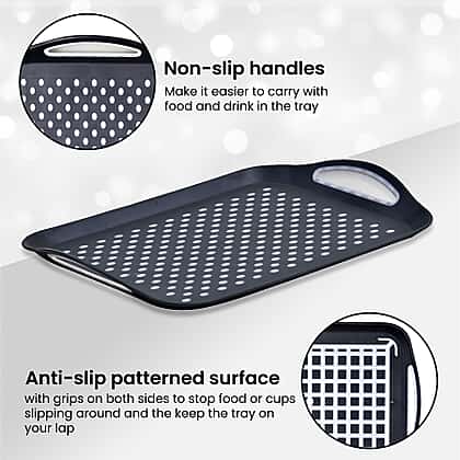 • ANTI-SKID: This set of two serving trays has an anti-slip rubber texture within the tray and underneath the tray base, increasing stability and allowing the food or beverage to be placed steadily