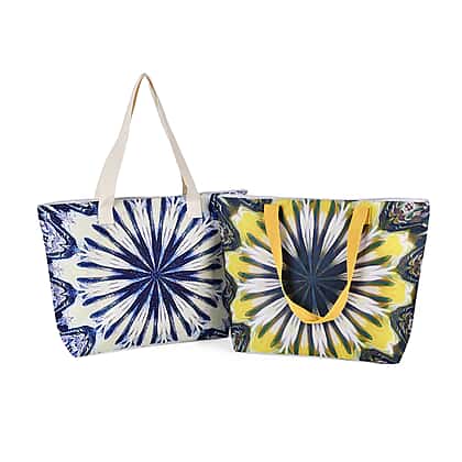 Set of 2 Tie Dye Pattern Tote Bag with Handle Drop - Blue & Yellow