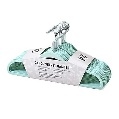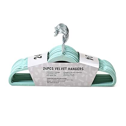 Set of 24 Velvet Hangers with 360-Degree Swivel Hook - Green