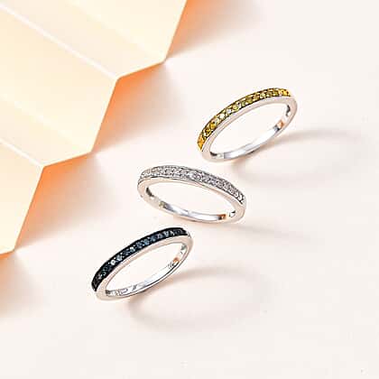 Set of 3 - Yellow Diamond Blue Diamond White Diamond Ring in Platinum Overlay Sterling Silver Wt. 6 Gms 0.500 Ct.
