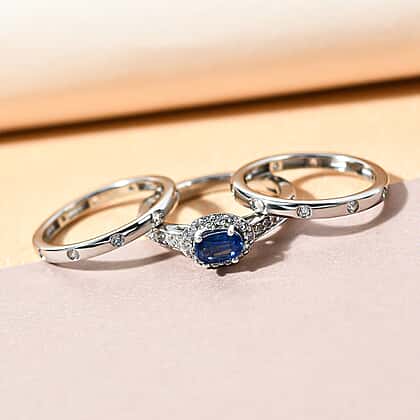 Set of 3 - Kashmir Kyanite and Natural Cambodian Zircon Ring in Platinum Overlay Sterling Silver 1.41 Ct, Silver Wt. 6.00 Gms