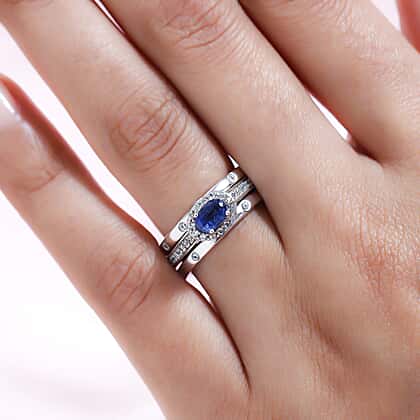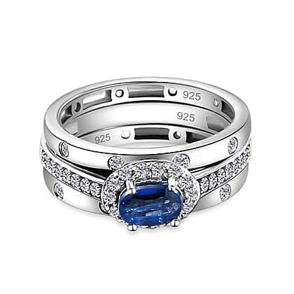 Set of 3 - 1.41ct. Kashmir Kyanite and Natural Cambodian Zircon Ring in Platinum Plated Sterling Silver