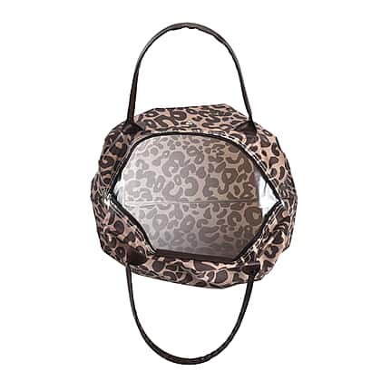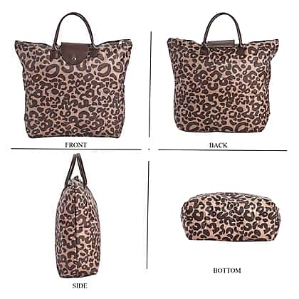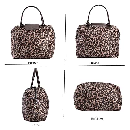 Set of 3 - Leopard Pattern Tote Bag with Handle Drop - Brown & Black