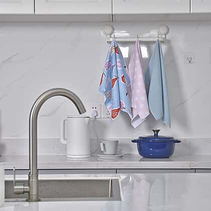 Now add style to your kitchen cleaning process with these three polyester kitchen towel sets. You can easily wipe out your kitchen slabs and utensils and minimise paper towel waste with these kitchen towels. These towels are made with polyester and ensure durability with a soft touch. Each towel has different patterns, including fruits, solid colour and dotted, allowing you to mark them according to the usage. The 250gsm thickness wipes out your hand and kitchen counters well, carrying hot utensils.