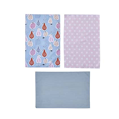 Set of 3 - Microfibre Fruit Pattern Kitchen Towels (Size 60x40 Cm) - Blue & Multi
