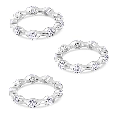 Set of 3 - Moissanite Band Rings in Rhodium Overlay Sterling Silver 6.50 Ct, Silver Wt. 27.00 Gms.