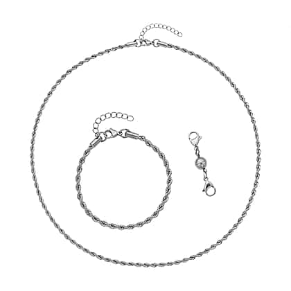 Set of 3 - Rope Necklace (Size 24), Bracelet (Size 7.5 In) and Magnetic Lock in Stainless Steel