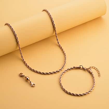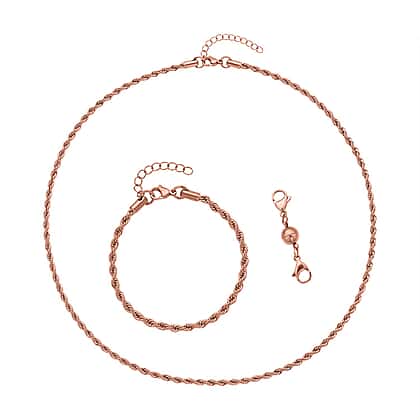 Set of 3 - Rope Necklace (Size 24), Bracelet (Size 7.5) and Magnetic Lock in Stainless Steel with Rose Gold