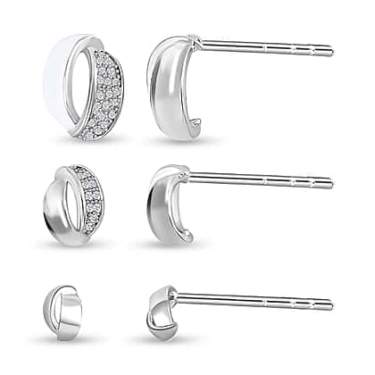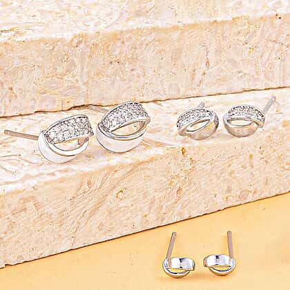 Set of 3 - Simulated Diamond Earrings in Silver Tone