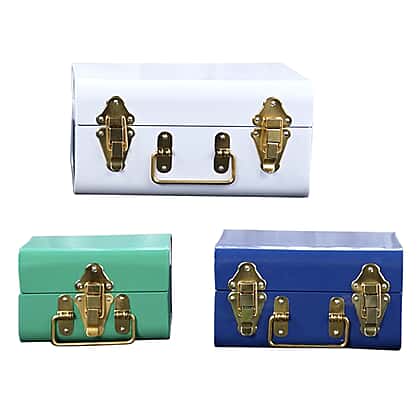 • DESIGN: This arrangement of three kaleidoscopic storage trunks has a vintage and retro look that gives a refined touch to your home style