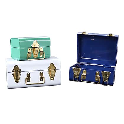 Set of 3 - Storage Trunk with Lock and Metal Storage Body with Golden Handles for Stylish Stackable Bedroom, Living room, Dressing room Storage - Green and Multi-colour