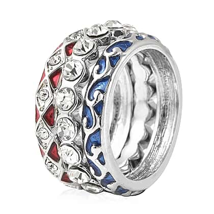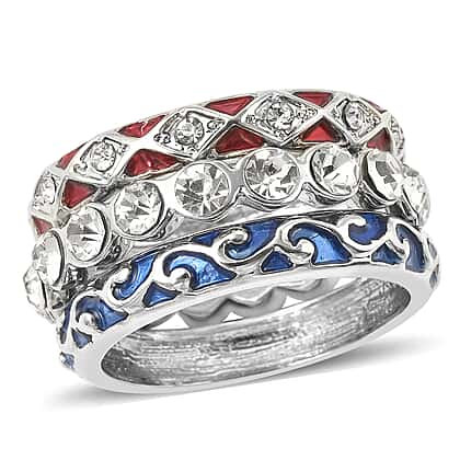 Set of 3 - White Austrian Crystal Ring in Silver Tone With Enamelled