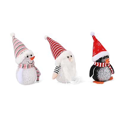 Set of 3 Christmas Ornaments (Penguin, Snowman and Christmas Gnome) with Multi LED Light Effect, 18cm Height