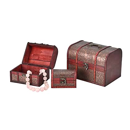 Discover the charm of storage with our Set of 3 Floral Pattern Wooden Chest Boxes. Each box, adorned with intricate floral designs, offers a vintage touch to your home decor. Perfect for stowing keepsakes, jewellery, or odds and ends, these chests combine functionality with aesthetic appeal. Nestled together or displayed separately, they add an air of antique elegance to any room, making organisation not just necessary but beautiful.