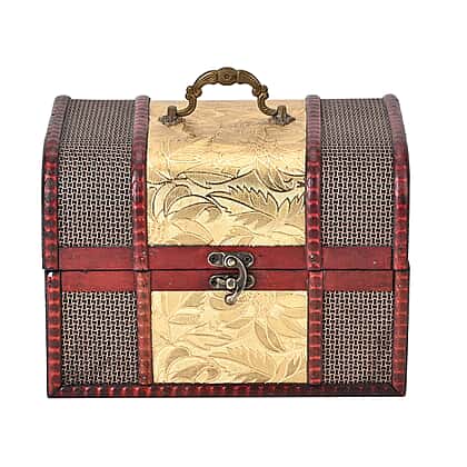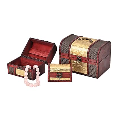 Set of 3 Floral Pattern Wooden Chest Boxes - Golden