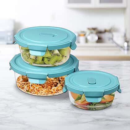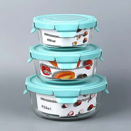 Set of 3 Glass Preservation Round Shape Box Size:13.5x6cm, 15x6.5cm, 17.5x7.3cm) - Green