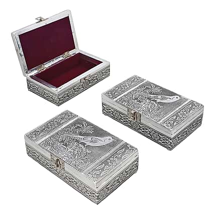 Set of 3 Handcrafted Aluminium Bird on Tree Top Embossed Storage Box (Size 16x10x4 cm)