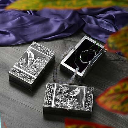 Transform your living space with this remarkable set of 3 bird embossed oxidised storage boxes. Crafted with meticulous attention to detail and finished with an enchanting oxidised effect, these boxes combine functionality and aesthetics effortlessly. Each box showcases intricate bird motifs, symbolising freedom and grace. Constructed from premium materials, these storage boxes offer both durability and style. Organise your treasures in these captivating boxes and add a touch of sophistication to your home decor.