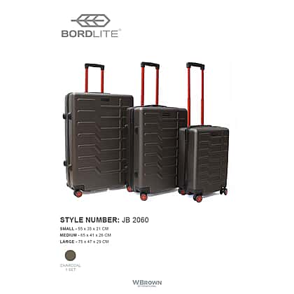 Set of 3 Bordlite Premium Hard Shell Suitcase with 360-Degree Spinning Wheels - Charcoal