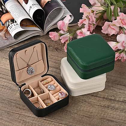 Set of 3 Jewellery Box With Soft Velvet Interior & 3 Hooks (Size 10x10x5 cm) - Black, White & Green