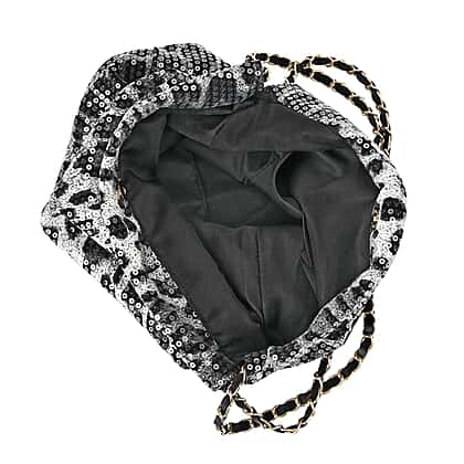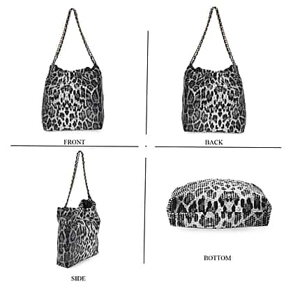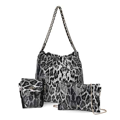 Set of 3 Leopard Print Sequin Bag (Includes Shoulder Bag, Crossbody Bag - Clutch Bag) - Grey