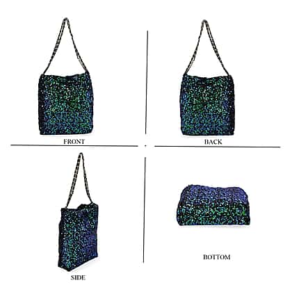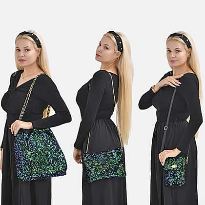 Set of 3 Sequin Bag (Includes Shoulder Bag, Crossbody Bag - Clutch Bag) - Green