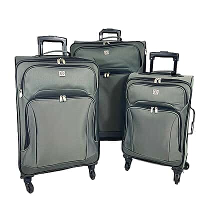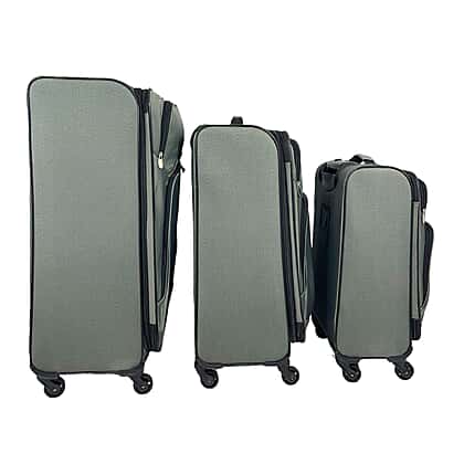 Set of 3 Soft Shell Luggage Suitcase with 360 Degree Spinner Wheels (31, 26 - 22 Inch) - Grey