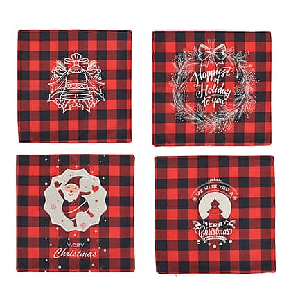 Set of 4 Printed Cushion Cover for Couch and Home Décor - Red
