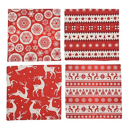 Set of 4 Printed Cushion Cover for Couch and Home Décor - Red and White