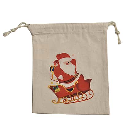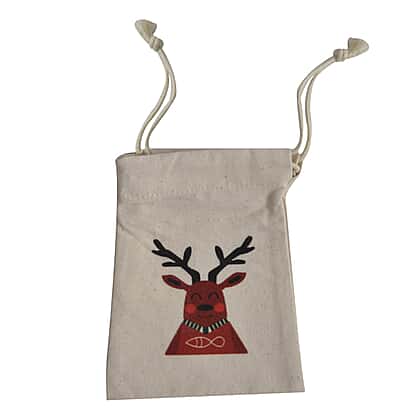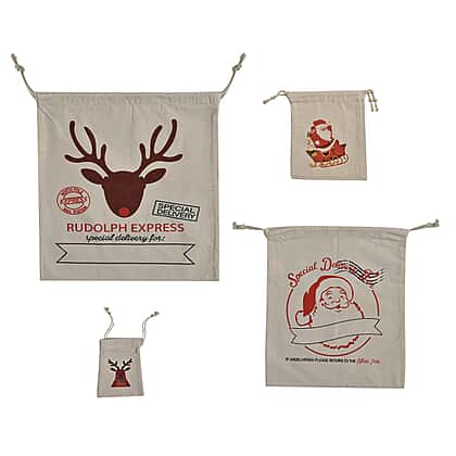 Set of 4 - Eco-Friendly 100% Cotton Reusable Drawstring Christmas Gift Bags