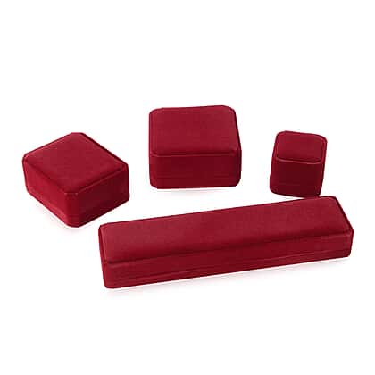 Set of 4 - Jewellery Boxes Ring Box (5.4x5x4.2 Cm), Pendant Box (Size 8.6x7x4 Cm), Bracelet (Size 9x9x4 Cm) and Long Chain Box (Size 21.8x5.6x3 Cm) - Wine Red