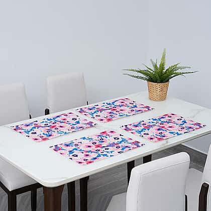 Set of 4 - Waterproof Floral Pattern Kitchen Placemat - Pink and Multi