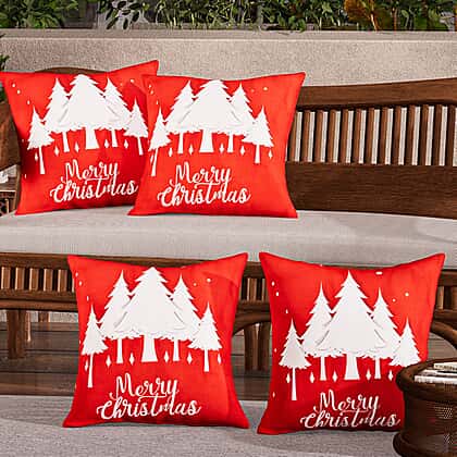 Infuse festive charm into your living space with our Set of 4 Christmas Cushion Covers featuring enchanting tree designs. Each cover, meticulously crafted, instantly spreads holiday cheer, making every nook and cranny feel like a yuletide celebration. Cosy up, share stories, and let these cushion covers be the backdrop to unforgettable festive moments. Perfect for those who cherish a merry yet stylish home transformation during the holiday season.