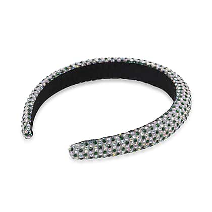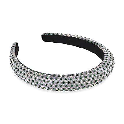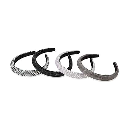 Set of 4 Sparkling Rhinestone Headbands for Women - Black, Grey, AB - Green