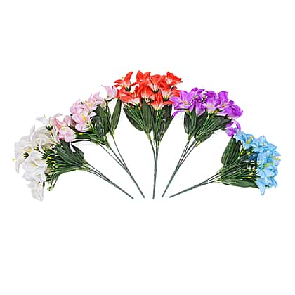 Set of 5- Vibrant Artificial Lily Flower Bouquets - Made With High Grade Silk