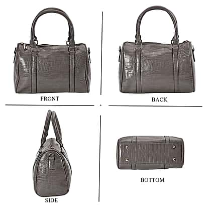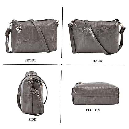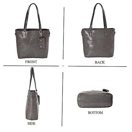 Set of 6 Croc Embossed Pattern Handbags (Incl. Tote Bag, Boston Bag, Crossbody Bag, Wallet, Wrist Bag, - Key Bag - Grey