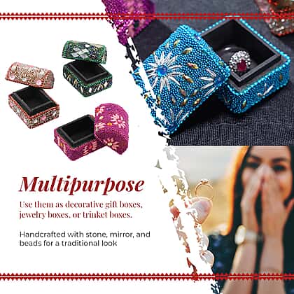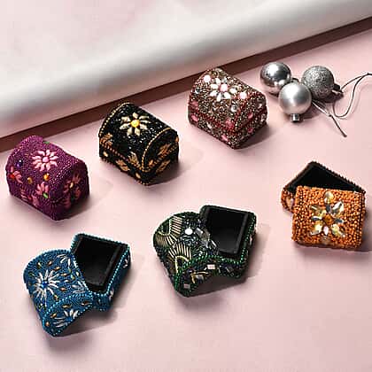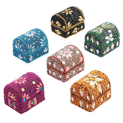 Set of 6 Handcrafted & Beaded Treasure Chest - Multi