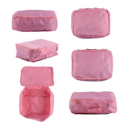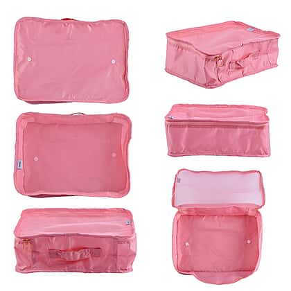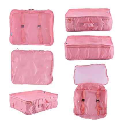 Set of 7 - Luggage Organiser Set (Includes Large Bag, Small Bag, Medium Bag, Extra Small Bag, Landry Bag, Shoe Bag and Flat Bag) - Pink Colour
