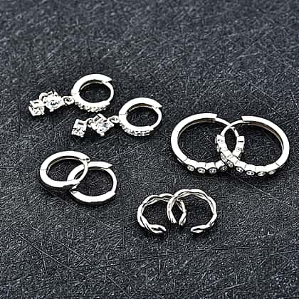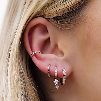 Set of Cuff, Dangle, Drop, Huggie Hoop Earrings for Women in Platinum plated Sterling Silver - 4 Pairs