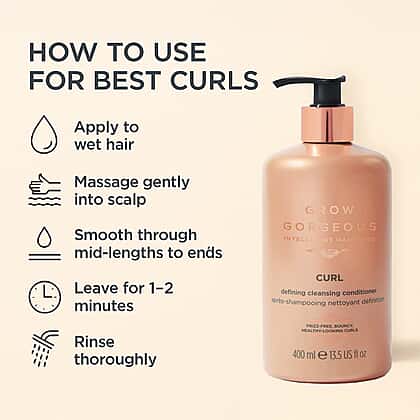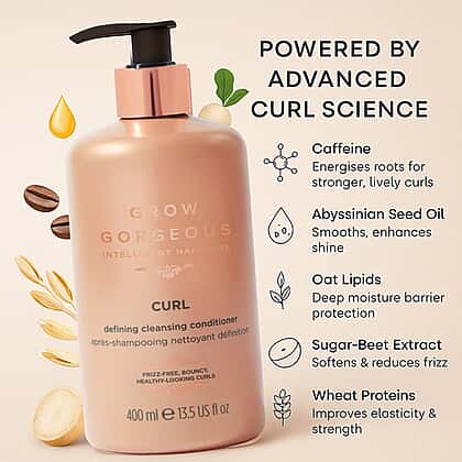 Simplify your haircare routine with the Grow Gorgeous Curl Cleansing Conditioner, a gentle co-wash that cleanses, hydrates, and nourishes curls in one easy step. Perfect for daily use, this lightweight formula enhances curl definition, reduces frizz, and leaves hair smooth, bouncy, and manageable. Infused with skincare-inspired ingredients, caffeine energises roots while the oat lipids complex locks in moisture and reinforces the scalp’s protective barrier. Curl technology ensures long-lasting definition, while sugar beet extract and crambe oil deliver hydration, softness, and natural shine. This vegan-friendly formula is ideal for curly, wavy, or afro hair and is free from parabens, sulphates, silicones, phthalates, and mineral oils.