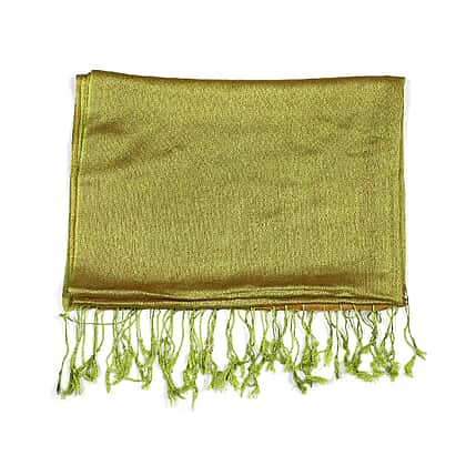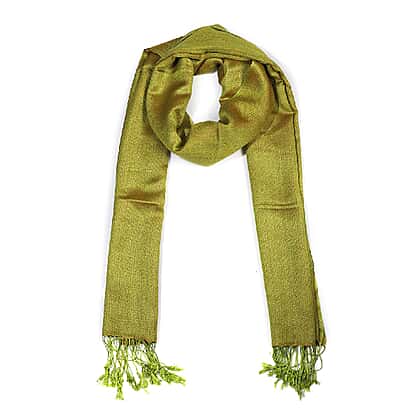 Limited Edition - Silk and Woolen Blended Shawl (Size 70x200 mm) with Tassels - Olive Green