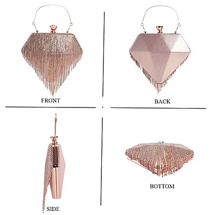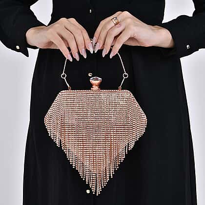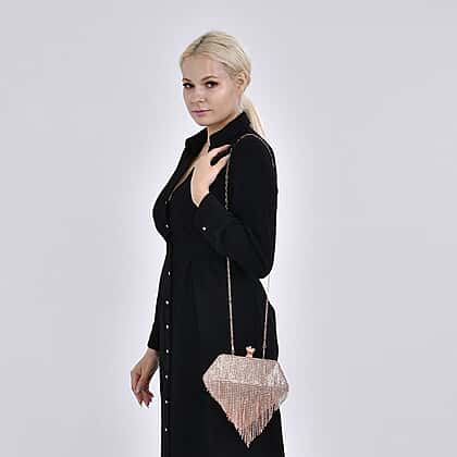 Captivate the room with the Sheeny Diamond Shape Crystal Studded Tassel Evening Clutch Bag. This exquisite accessory is a jewel adorned with sparkling crystals and a chic tassel that adds a dash of glamour. Accompanied by a sleek, long strap for versatile wear, this clutch is ideal for nights when elegance is paramount. It's not just a bag; it's the highlight of your ensemble, a beacon of sophistication.