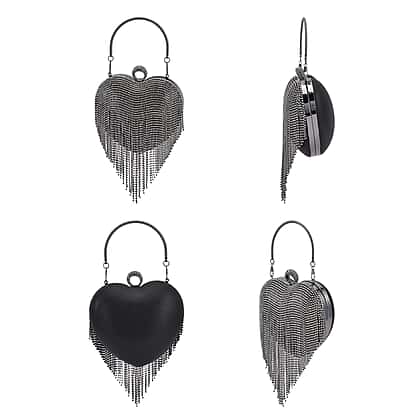 Sheeny Heart Shape Tassel Evening Clutch Bag (Size 15x16 Cm) - Black